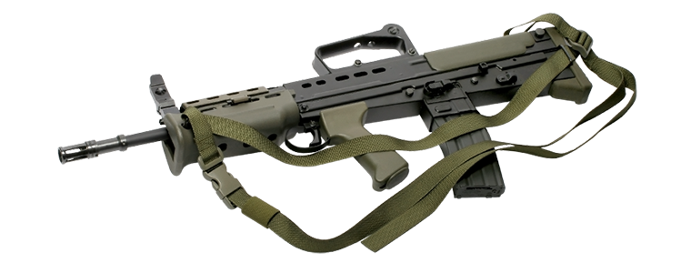 The SA80 is a British family of 5.5645mm NATO small arms, all of which are selective fire, gas-operated assault rifles. The L85 rifle variant of the SA80 family has been the standard issue service rifle of the British Armed Forces since 1987, replacing the L1A1 variant of the FN FAL. The first prototypes were created in 1976, with production ending in 1994.